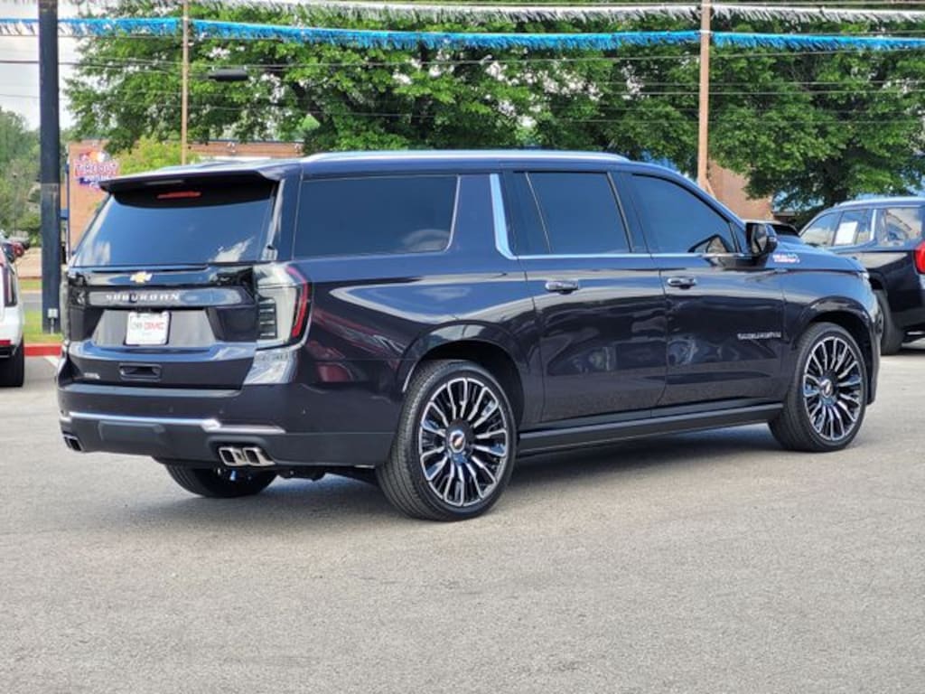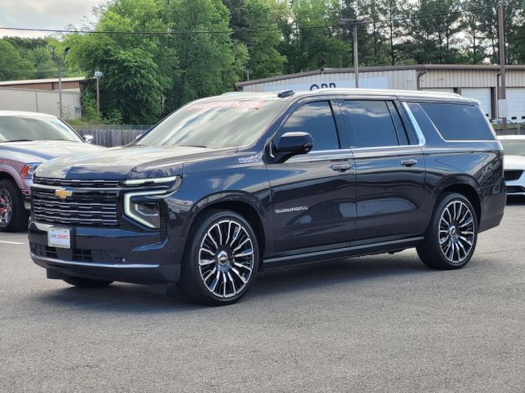 This 2025 Chevrolet Suburban comes equipped with Advanced Security Package (Glass Breakage Sensor, Self-Powered Horn Theft-Deterrent Alarm System, Vehicle Inclination Sensor, and Vehicle Interior Movement Sensor), Advanced Trailering Package (Blind Zone Steering Assist with Trailering, Hitch View with Pan/Zoom Image Adjustment, and Smart Trailer Integration Indicator), High Country Deluxe (Air Ride Adaptive Suspension, Dual-Pane Power Panoramic Sunroof, and Power-Retractable Assist Steps), License Plate Front Mounting Package, Max Trailering Package (2-Speed Active Electronic AutoTrac Transfer Case, Extra Capacity Cooling System, Hill Descent Control, and Integrated Trailer Brake Controller), Preferred Equipment Group 3LZ (15" Diagonal Multi-Color Head-Up Display, 3rd Row 60/40 Power-Folding Split-Bench, 4-Way Power Driver Lumbar Seat Adjuster, 4-Way Power Front Passenger Lumbar Seat Adjuster, 8-Way Power Front Passenger Seat Adjuster, Bose 10-Speaker Surround with CenterPoint, Bright Front and Rear Door Sill Plates, Chrome Door Handles with Body-Color Strip, Dual Exhaust System, Front LED Fog Lamps, Heated 2nd Row Outboard Seats, Heated Driver and Front Passenger Seats, Heated Power-Adjustable Outside Mirrors, Heated Steering Wheel, Inside Rearview Auo-Dimming Rear Camera Mirror, LED Headlamps with LED Daytime Running Lamps, LED Tail Lamps, Magnetic Ride Control Suspension, Memory Settings, Perforated Heated and Ventilated Seats, Power Release 2nd Row Bucket Seats, Power Tilt and Telescopic Steering Column, Power-Sliding Center Floor Console, Rear Power Liftgate, Universal Home Remote, Wheels: 22" x 9" Bright Machined Aluminum, Wireless Phone Charging, and Wheel Locks (set of 4)), Premium Liner Protection Package (3rd Row All-Weather Floor Liners, All-Weather Cargo Mat, and First and Second Rows Premium Floor Liners), Technology & Entertainment Package (Rear Seat Media System), Technology Package (AutoSense Hands-Free Power Liftgate), Navigation system: Google built-in compatibility (select service plan required, terms and limitations apply), 1.5 KW Heater/Defrost Air System, 10 Speakers, 250 Amps Alternator, 3.23 Rear Axle Ratio, 3rd row seats: split-bench, 4-Wheel Disc Brakes, 8-Way Power Driver Seat Adjuster, 850 Cold-Cranking Amps Battery, ABS brakes, Adaptive suspension, Air Conditioning, Alloy wheels, AM/FM radio: SiriusXM with 360L, Apple CarPlay/Android Auto, Auto High-beam Headlights, Auto-dimming door mirrors, Auto-dimming Rear-View mirror, Auto-leveling suspension, Automatic temperature control, Brake assist, Bumpers: body-color, Compass, Delay-off headlights, Diesel B20 Fuel, Driver door bin, Driver vanity mirror, Dual front impact airbags, Dual front side impact airbags, Electronic Stability Control, Emergency communication system: OnStar Services capable, Engine Block Heater, Exterior Parking Camera Rear, Four wheel independent suspension, Front anti-roll bar, Front Bucket Seats, Front Center Armrest, Front dual zone A/C, Front fog lights, Front reading lights, Fully automatic headlights, Garage door transmitter, Heads-Up Display, Heated door mirrors, Heated front seats, Heated rear seats, Heated steering wheel, Illuminated entry, Low tire pressure warning, Memory seat, Occupant sensing airbag, Outside temperature display, Overhead airbag, Overhead console, Panic alarm, Passenger door bin, Passenger vanity mirror, Perforated Leather Seating Surfaces, Power door mirrors, Power driver seat, Power Liftgate, Power passenger seat, Power steering, Power windows, Radio data system, Radio: 17.7" Diagonal Advanced Color LCD Display, Rain sensing wipers, Rear air conditioning, Rear anti-roll bar, Rear reading lights, Rear window defroster, Rear window wiper, Remote keyless entry, Security system, SiriusXM with 360L Trial Subscription, Speed control, Speed-sensing steering, Split folding rear seat, Spoiler, Steering wheel memory, Steering wheel mounted audio controls, Tachometer, Telescoping steering wheel, Tilt steering w