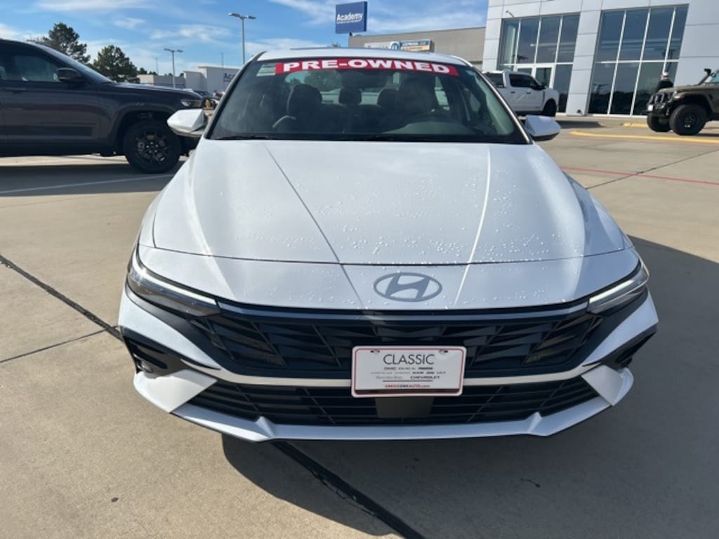 CARFAX One-Owner. 30/39 City/Highway MPG Classic CDJR in Texarkana is proud to offer this handsome 2025 Hyundai Elantra in White. This 2025 Hyundai Elantra comes with the following features; Option Group 01, 17" x 7.0J Alloy Wheels, 4-Wheel Disc Brakes, 6 Speakers, ABS brakes, Air Conditioning, Alloy wheels, AM/FM radio: SiriusXM, Apple CarPlay & Android Auto, Auto High-beam Headlights, Automatic temperature control, Brake assist, Bumpers: body-color, Delay-off headlights, Driver door bin, Driver vanity mirror, Dual front impact airbags, Dual front side impact airbags, Electronic Stability Control, Emergency communication system: Bluelink+, Exterior Parking Camera Rear, Front anti-roll bar, Front Bucket Seats, Front Center Armrest, Front dual zone A/C, Front reading lights, Front wheel independent suspension, Fully automatic headlights, Heated door mirrors, Heated Front Bucket Seats, Heated front seats, Illuminated entry, Leather Shift Knob, Leather steering wheel, Low tire pressure warning, Navigation System, Occupant sensing airbag, Outside temperature display, Overhead airbag, Overhead console, Panic alarm, Passenger door bin, Passenger vanity mirror, Power door mirrors, Power moonroof, Power steering, Power windows, Premium Cloth Seat Trim, Radio: AM/FM/HD/SiriusXM Display Audio, Rear seat center armrest, Rear side impact airbag, Rear window defroster, Remote keyless entry, Security system, Speed control, Speed-sensing steering, Split folding rear seat, Steering wheel mounted audio controls, Tachometer, Telescoping steering wheel, Tilt steering wheel, Traction control, Trip computer, and Variably intermittent wipers.