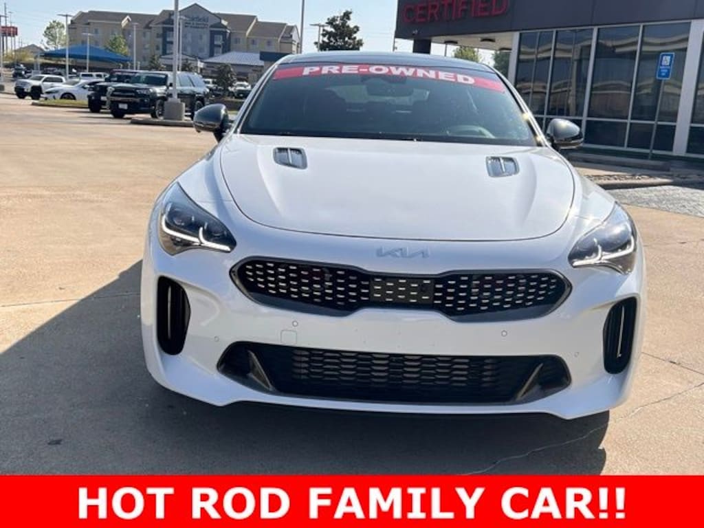 This 2023 Kia Stinger comes equipped with the following features Red Interior Color Package (Red Leather Seat Trim), 15 Speakers, 4-Wheel Disc Brakes, ABS brakes, Adaptive suspension, Air Conditioning, Alloy wheels, AM/FM radio: SiriusXM, Anti-whiplash front head restraints, Apple CarPlay & Android Auto, Auto High-beam Headlights, Auto tilt-away steering wheel, Auto-dimming door mirrors, Auto-dimming Rear-View mirror, Automatic temperature control, Brake assist, Bumpers: body-color, Compass, Delay-off headlights, Door Sill Applique, Driver door bin, Driver vanity mirror, Dual front impact airbags, Dual front side impact airbags, Electronic Stability Control, Emergency communication system, Four wheel independent suspension, Front anti-roll bar, Front Bucket Seats, Front Center Armrest, Front dual zone A/C, Front reading lights, Fully automatic headlights, Garage door transmitter: HomeLink, harman/kardon® Speakers, Heads-Up Display, Heated & Ventilated Front Bucket Seats, Heated door mirrors, Heated front seats, Heated rear seats, Illuminated entry, Knee airbag, Low tire pressure warning, Memory seat, Nappa Leather Seat Trim, Navigation System, Occupant sensing airbag, Outside temperature display, Overhead airbag, Overhead console, Panic alarm, Passenger door bin, Passenger vanity mirror, Power door mirrors, Power driver seat, Power Liftgate, Power moonroof, Power passenger seat, Power steering, Power windows, Radio: harmon/kardon AM/FM/MP3/HD Audio System, Rain sensing wipers, Rear air conditioning, Rear anti-roll bar, Rear Bumper Applique, Rear reading lights, Rear seat center armrest, Rear window defroster, Remote keyless entry, Security system, Smart Key w/ Push Button and Remote Start, Speed control, Speed-sensing steering, Speed-Sensitive Wipers, Split folding rear seat, Sport steering wheel, Steering wheel memory, Steering wheel mounted audio controls, Tachometer, Telescoping steering wheel, Tilt steering wheel, Traction control, Trip computer, Turn signal indicator mirrors, Variably intermittent wipers, Ventilated front seats, Wheel Locks, and Wheels: 8.0J x 19 Front/8.5J x 19 Rear Spire Alloy. Clean CARFAX. CARFAX One-Owner. 2023 Kia Stinger GT2 AWD 3.3L V6 DGI
